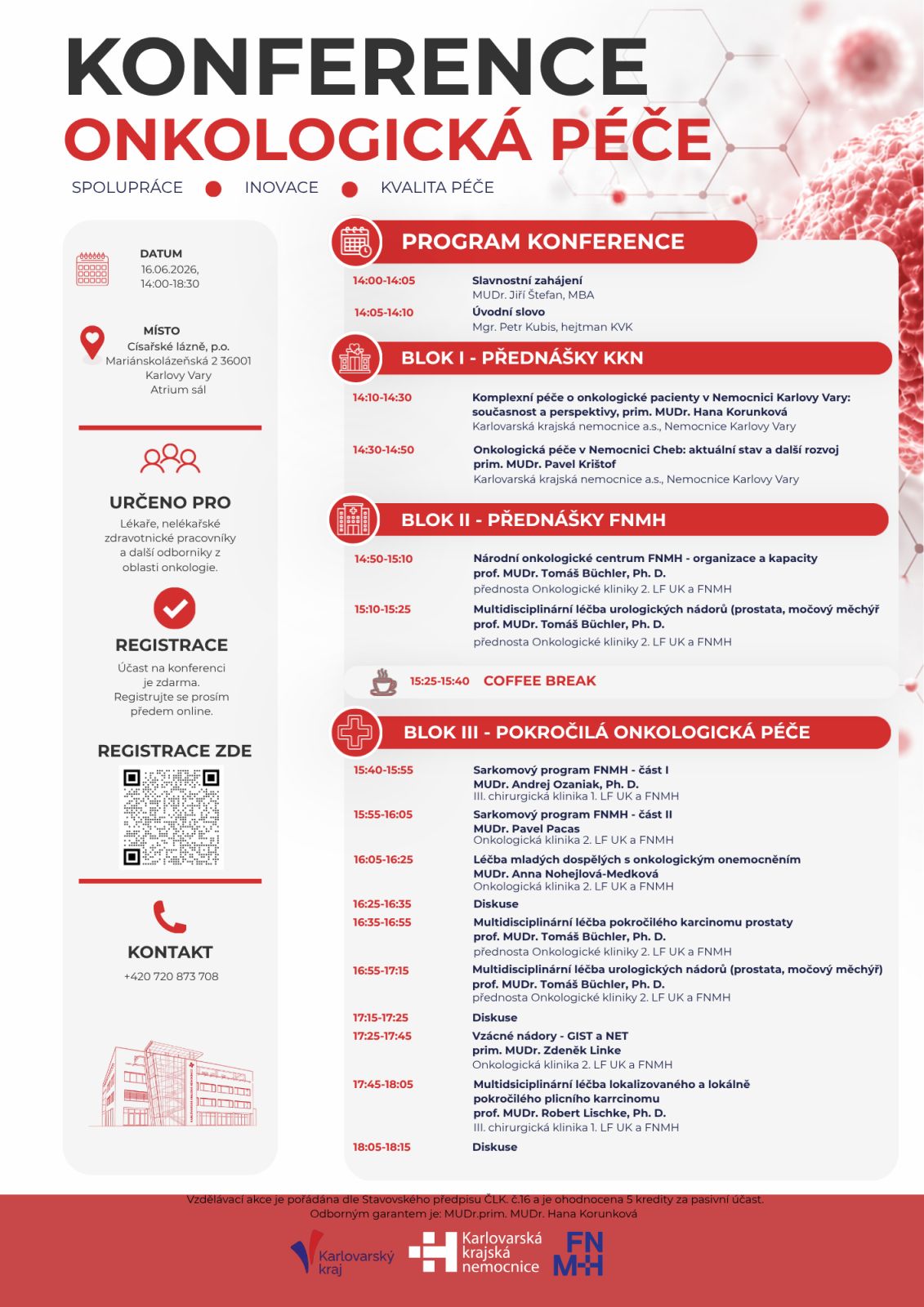 Vzdělávací akce je pořádána dle Stavovského předpisu ČLK. č.16 a je ohodnocena 5 kredity za pasivní účast.